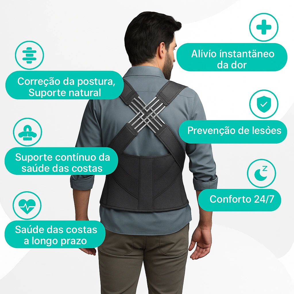 Experimente a diferença com um corretor que não só melhora a postura, mas também ajuda a reduzir dores e tensões musculares.